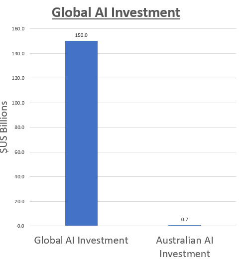 AI investment is surging globally, with a 48% increase in 2024 alone, largely driven by enthusiasm for generative AI. However, Australia’s share of this funding remains modest. You might say it’s directionally correct and functionally trivial. We’re investing just A$0.7 billion in private investment last year. For AI practitioners, this means competition for resources is fierce, and demonstrating ROI is more critical than ever.